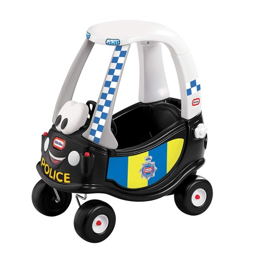 Little Tikes Patrol Policji jeździk dla dzieci Cozy Coupe z wygodnym wysokim oparciem, półką do przewożenia napoi oraz obrotowymi kołami. Jeździk Cozy Coupe Patrol Policji w kolorze czarnym został wyposażony w kierownicę z klaksonem. Nisko położony środek ciężkości pozwala na bezpieczną i pewniejszą naukę pierwszych „kroków” na jeździku. Dodatkowo przednie kółka obracają się o 360º dla wygodniejszego prowadzenia i skręcania.