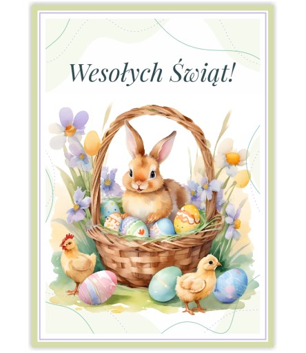 Kolorowa kartka z motywem wielkanocnym będzie idealnym upominkiem do wręczenia z okazji Świąt Wielkanocnych.