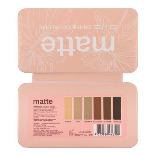 Paletka Matte On-The-Go zawiera 6 profesjonalnie zabarwionych pigmentów, które pozwolą stworzyć idealny makijaż oka. Blendowalne, łatwe w aplikacji cienie pozwolą stworzyć wiele stylizacji makijażowych. Modne, blaszane opakowanie zawiera pełnowymiarowe lusterko. Nałóż na powieki za pomocą aplikatora lub pędzelka.