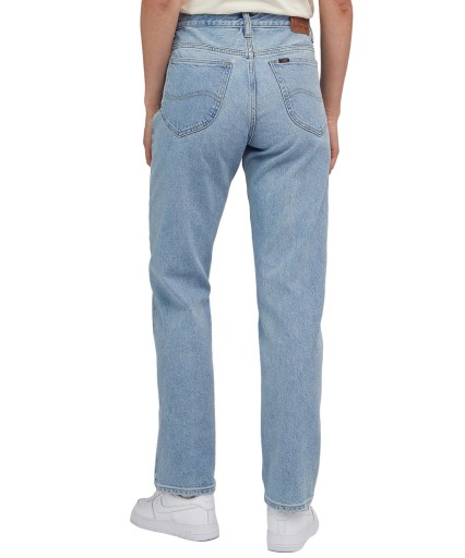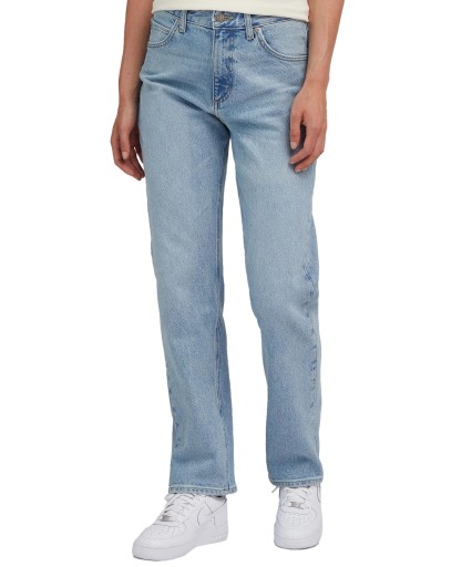 Spodnie o dopasowanym kroju i standardowym stanie, z kultowymi detalami męskich dżinsów Rider z 1941 roku. Prosty szew zewnętrzny i wyraziste większe kieszenie z tyłu. Są również lekko poszerzane w talii, czym nawiązują do męskich fasonów, przy czym nadal wyglądają bardzo kobieco. Ten gruby jeans z tencelu został wykonany przy użyciu wysokiej jakości lyocellu, dzięki czemu jest przyjazny dla środowiska. Dodatek streczu zapewnia wygodę noszenia. Jasnoniebieskie wykończenie w stylu vintage ma linie zagnieceń w górnej części oraz ciemniejsze obszary z metkami na szwach i w pasie. Guzik i nity z postarzanego mosiądzu to klasyczne detale pięciokieszeniowej stylizacji. Skład: 67% bawełna, 32% lyocell, 1% elastan.