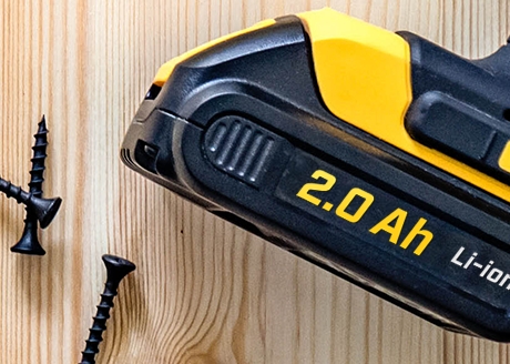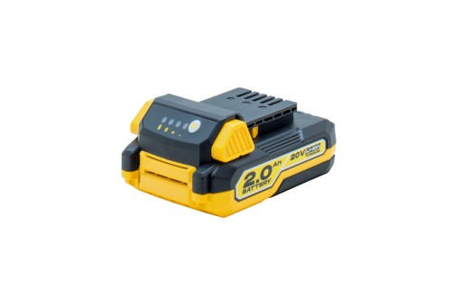 Wydajny akumulator najnowszej generacji o napięciu 20 V 2.0 Ah Akumulator 20 V 2.0 Ah zapewni Twoim bezprzewodowym narzędziom długie i komfortowe zasilanie na pojedynczym ładowaniu. Usprawniona komunikacja pomiędzy źródłem zasilania a urządzeniem sprawia, że napięcie jest stabilne podczas całego cyklu pracy. Pracuj tak, jak lubisz – bez żadnych niespodzianek.
