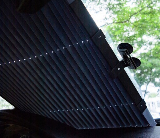 Roleta samochodowa na szybę, mocowana za pomocą mocnych przyssawek. Żaluzja rozwija się jak harmonijka i nie zajmuje dużo miejsca po złożeniu.