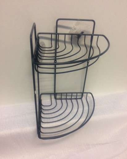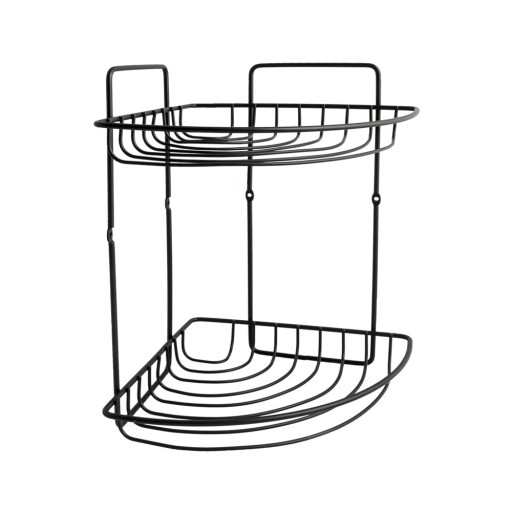 Druciana półka łazienkowa narożna wykonana ze stali malowanej na kolor czarny o matowym wykończeniu