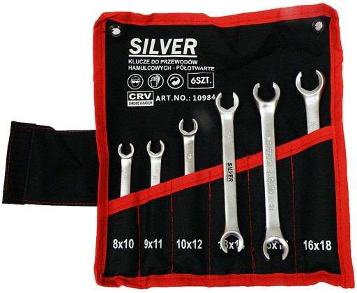 - Zestaw 6-elementowy 8-18 mm kluczy półotwartych do przewodów hamulcowych