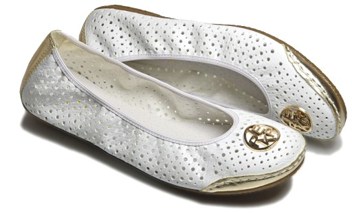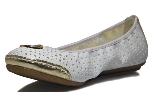 Białe ażurowe balerinki z ozdobą