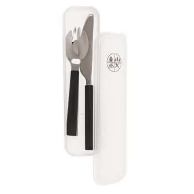 W opakowaniu znajdziesz nóż oraz łyżko-widelec.