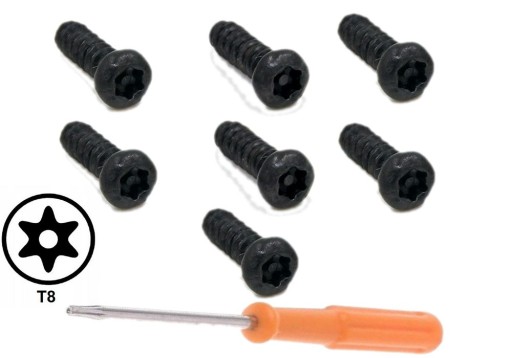 КОМПЛЕКТ 7 ЧЕРНЫХ ВИНТОВ + ОТВЕРТКА T8 ДЛЯ ПОДКЛАДКИ XBOX 360