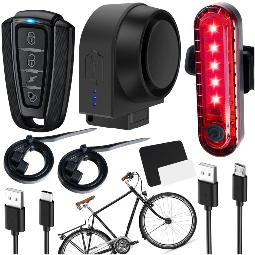 ALARM ROWEROWY ANTYKRADZIEŻOWY 2w1 ZABEZPIECZENIE Pilot + Tylna LAMPKA LED ⭐⭐⭐⭐⭐