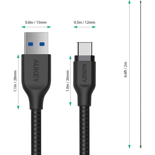 Kabel od Aukey to doskonałe i niedrogie rozwiązanie, które umożliwia szybkie i bezpieczne ładowanie wszystkich urządzeń ze złączem USB-C, a także standardowy transfer przesyłania danych o prędkości do 5 Gbps.