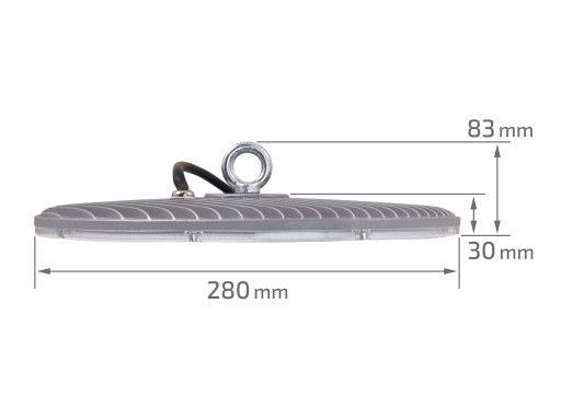 ✅ Lampa High Bay UFO 100W cechuje się także szerokim kątem świecenia 120°, co gwarantuje równomierne oświetlenie całego obszaru.