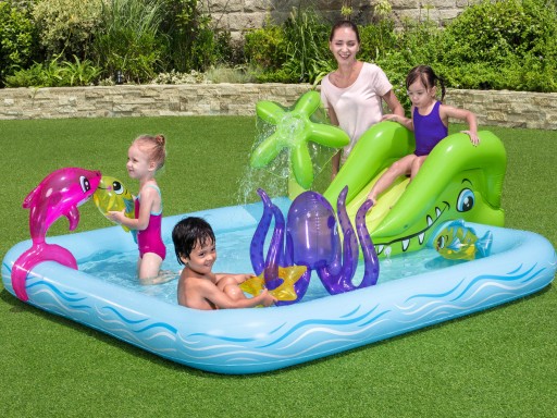 Wodny plac zabaw Bestway to idealne rozwiązanie dla dzieci, które lubią wodę i chcą zażywać radosnych kąpieli w upalne dzionki. Baseniki przekonają każdego niezdecydowanego maluszka, pozwolą oswoić mu się z wodą i pokonać przed nią lęk.