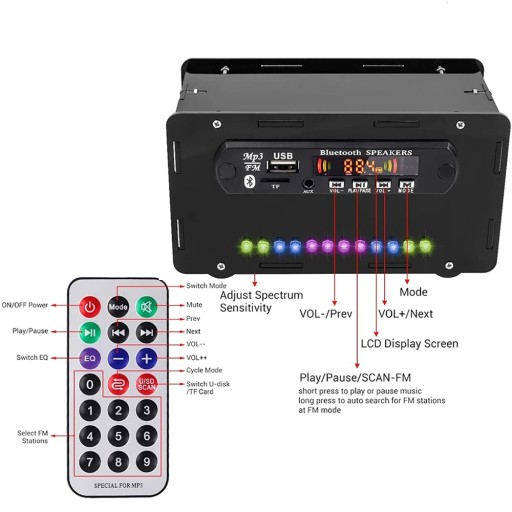 Głośnik z BT Odtwarzacz MP3, RADIO + Spektrum DiY KIT BLACK