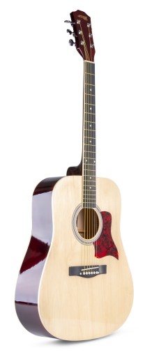 Ta akustyczna gitara jest idealna dla każdego, kto chce zacząć grać na gitarze lub postanawia wrócić do gry, a nie chce na ten cel przeznaczać fortuny (rewelacyjnie połączenie jakości i ceny). Instrument jest pełnowymiarowy i posiada stalowe struny. Korpus został zaprojektowany w klasycznym stylu drednota, co zapewnia niesamowity dźwięk połączony z zachodnim wyglądem. Ten model jest odpowiedni dla osób w każdym wieku. Dzięki dołączonym do zestawu wszystkim niezbędnym akcesoriom możesz od razu zacząć muzyczną przygodę.