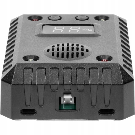 4 fasolkowe otwory do mocowania, głośnik ultradźwiękowy, 4 diody LED, czerwony wyświetlacz cyfrowy, siedmiodsegmentowy, dwucyfrowy, 2 przyciski do zmiany trybu pracy urządzenia, włącznik kołyskowy, gniazdo zasilania DC 5.5/2.1, gniazdo do połączenia USB 5 V typu A, miejsce na umieszczenie baterii AA x 3 szt. (brak baterii w zestawie).