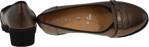Dzięki zastosowaniu wkładki w systemie RELAX SYSTEM, mokasyny GALANT 1076 zapewniają niezrównany komfort przez cały dzień. Ergonomiczna konstrukcja i miękka podszewka ze skóry naturalnej gwarantują optymalne wsparcie stopy, a lekka gumowa podeszwa z koturnem o wysokości 4 cm zapewnia stabilność i elegancję.