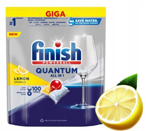 Dzięki unikalnej formule z Liquid Powerball, tabletki FINISH Quantum Lemon są w stanie usunąć nawet najtrudniejsze zabrudzenia, pozostawiając naczynia i sztućce w pełni olśniewające.