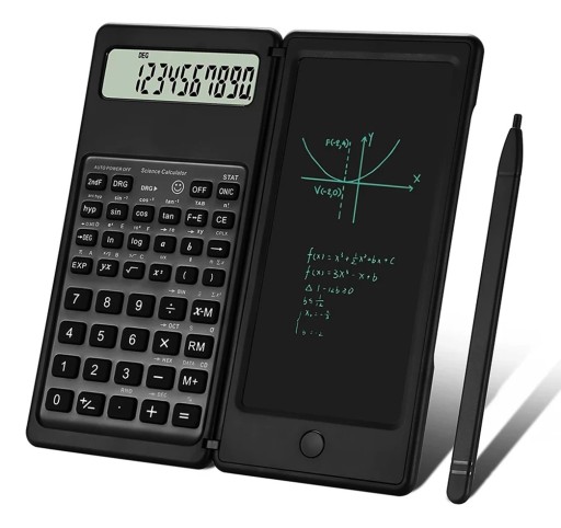 Kalkulator posiada 6,5-calowy tablet do pisania i rysik, dzięki któremu możesz robić notatki podczas obliczeń. Możesz nacisnąć przycisk usuwania, aby usunąć notatki.