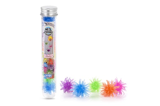 "Wyścig wirusków" to nazwa popularnej zabawki dla dzieci, składającej się z kilku małych piłeczek z wypustkami, które umożliwiają im pełzanie po płaskiej powierzchni. Piłeczki te są wykonane z miękkiego tworzywa, a ich rozmiar to ok. 5 centymetrów.