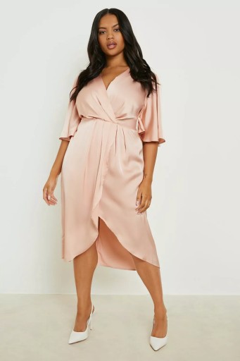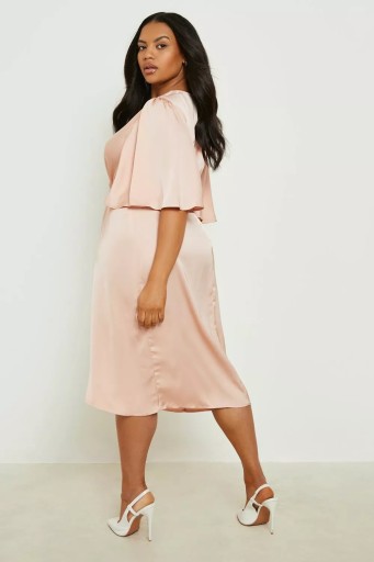 Boohoo PLUS SIZE SATYNOWA KOPERTOWA SUKIENKA MIDI RÓŻOWA 48