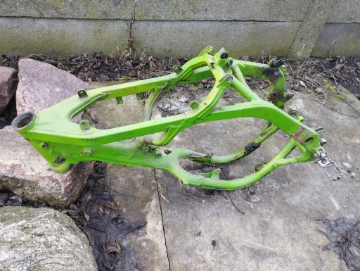 Sprzedam ramę z Kawasaki KX 250, stan bardzo dobry, prosta, brak uszkodzeń czy śladów napraw. Numer 7osiem4 5osiem1 1siedem1.