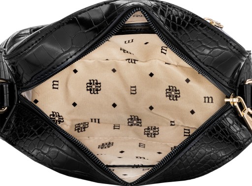 TOREBKA MONNARI Listonoszka CZARNA CROCO ZŁOTE LOGO LOGOWANY PASEK