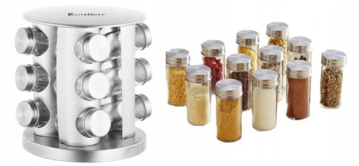 - Ilość pojemników: 12 pojemników + obrotowy stojak ze stali nierdzewnej
