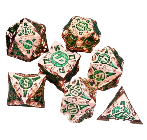 Zestaw 7 metalowych kości idealnych do każdego systemu i dla każdego gracza.