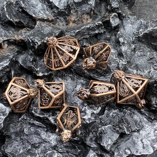 W ofercie sklepu RGFK znajdziesz oryginalne, metalowe kości do RPG nawiązujące do krasnoludów, elfów, wampirów, wilkołaków, czy jednorożców. Jeżeli chcesz podgrzać atmosferę, wybierz kości w stylu steampunk, antyku lub średniowiecza i przenieś się z nimi prosto do świata gry!