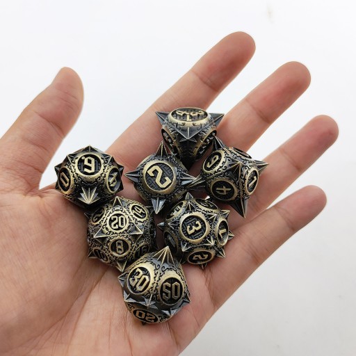 Zestaw siedmiu metalowych kości do gier fabularnych