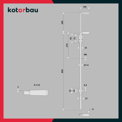 - Oferowany rygiel do drzwi ma długość 800 mm i szerokość 100 mm.