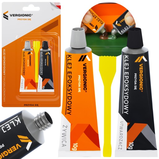 Klej epoksydowy to bardzo mocne spoiwo uznawane za jedno z najbardziej uniwersalnych używanych na rynku. Działa dzięki połączeniu dwóch składników – żywicy z utwardzaczem, zapakowanych w osobne tubki. Składniki uaktywniają się przez reakcję chemiczną, w której skutek powstaje ciepło.