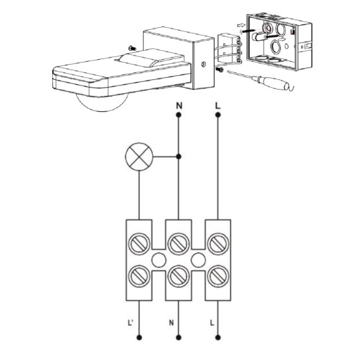 - LUX - Regulacji progu natężenia światła, przy którym czujnik ma załączać oświetlenie LUX: <3-2000 lux