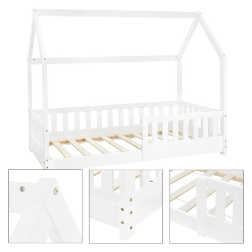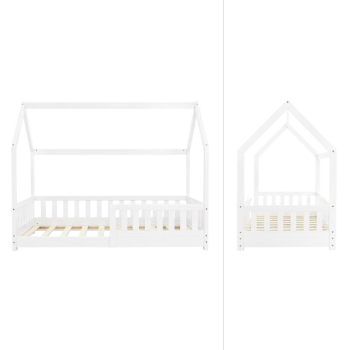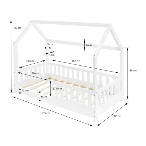 To drewniane łóżko dla dzieci oferuje dziecku dużo miejsca do odpoczynku i słodkich snów po męczącym dniu. Dzięki niewielkiej wysokości i przytulnemu kształtowi domku, łóżko nadaje się nie tylko jako miejsce do spania, ale także jako kącik do czytania lub domek do zabawy! Super dla najmłodszych!