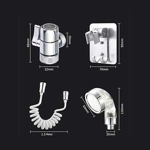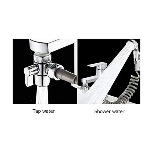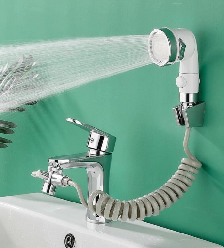 Zdejmij zawór kranu i zainstaluj nowy zawór trójdzielny. Zainstaluj wąż z uchwytem prysznicowym na ścianie w ujściu bocznym. Zestaw zawiera również uchwyt do montażu na ścianie oraz umieszczenia w nim. Dolna część zasilana z sieci jest na normalną wodę z kranu. Instalacja łazienkowa przedłużacza wodnego nie wpływa na strumień wody płynący ze źródła zlewu.