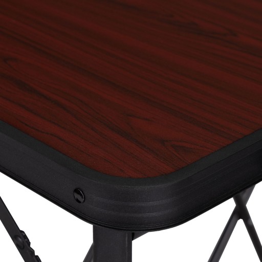 Stół wykonany z dobrej jakości materiałów. Połączenie aluminiowej konstrukcji stelaża z blatem z płyty MDF zapewnia solidność i stabilność stołu. Atutem jest jego niska waga, zapewniająca bezproblemowy transport. Stolik łatwo się rozkłada, a po złożeniu przyjmuje wygodną formę walizki. Wbudowany uchwyt ułatwia przenoszenie. Dodatkową funkcją jest możliwość regulacji wysokości stolika.