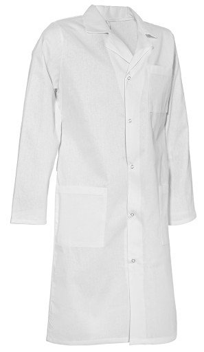 Idealnie nadaje się jako odzież ochronna w trakcie pracy lub zajęć w laboratorium - długość jest wystarczająca, aby dobrze chronić ubranie, a brak sztucznych dodatków w składzie sprawia, że w razie kontaktu z ogniem lub chemikaliami materiał nie topi się.