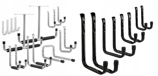Haki garażowe NEO to zestaw 8 szt. solidnych haków i uchwytów, które pozwolą utrzymać porządek w piwnicy, garażu i warsztacie. Idealne do przechowywania rowerów, drabin, urządzeń ogrodowych itp. Haki mają różne wielkości oraz głębokości, a niektóre są wyściełane pianką ochronną, aby zapobiec zarysowaniom. Do zestawu dołączone są wkręty i kołki rozporowe.