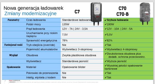 - Typy obsługiwanych akumulatorów kwasowo-ołowiowe, EFB, AGM, żelowe, VRLA