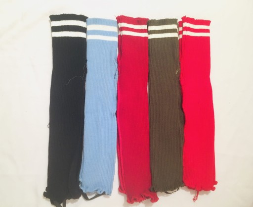 Getry harcerskie w różnych kolorach, z białymi paskami lub bez.