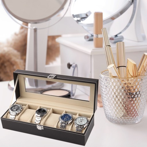 ✔️w kuferku znajduje się 6 przegródek z miejscem na zegarki lub inna biżuterię