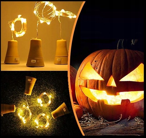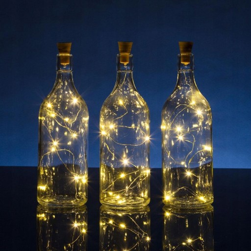 ✅Ledowe światełka na druciku przymocowane do korka, wykonanego z tworzywa sztucznego.
