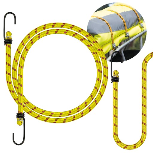Gumy są rozciągliwe, dlatego mogą dopasować się do obejmowanego kształtu i wielkości. Zakończone metalowymi haczykami, dzięki którym można zaczepić je o różne powierzchnie np. pasy, metalowe części, bagażniki, dachy. Każda guma bez rozciągania ma 110 cm. Cechuje je duża elastyczność i wytrzymałość.