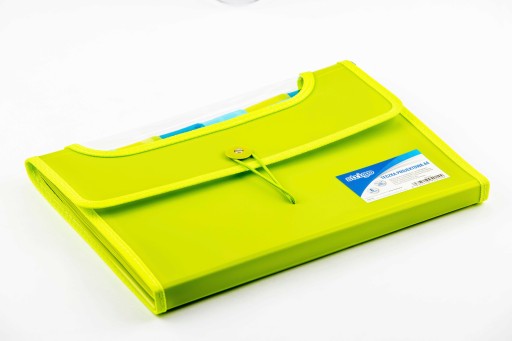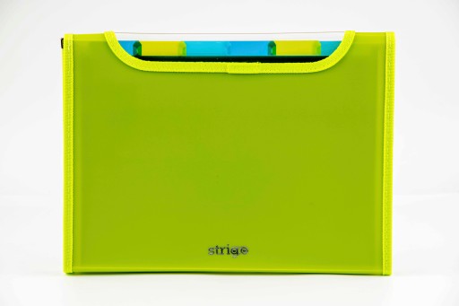 Teczka projektowa VFILE STRIGO A4 z 6 przekładkami, zielona Zielona teczka VFILE STRIGO w formacie A4 posiada 6 kolorowych przekładek z indeksem i miejsce na wsunięcie np.: karteczki z informacją.