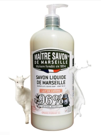 Maitre Savon MYDŁO marsylskie w płynie KOZIE MLEKO wyprodukowane wyłącznie na bazie olejów roślinnych. Wzbogacone nawilżającą, natłuszczająca naturalną gliceryną. Delikatnie oczyszcza ręce, ciało i pozostawia skórę zdrową, miękką i elastyczną. Przeznaczone do codziennej pielęgnacji każdego rodzaju skóry. Kremowo-mleczny zapach pozostawia delikatny zapach na skórze. Nie zawiera parabenów. Łagodne dla skóry, przyjazne dla otoczenia. Wyprodukowano metodą tradycyjną w Marsylii. Mydło marsylskie w płynie pod prysznic do kąpieli do rąk na bazie olejów o doskonałych właściwościach pianotwórczych, oczyszczających i nawilżających. Unikalny zabieg oczyszczający, który dobrze usuwa brud i dobrze nawilża. Stworzony z wysokiej jakości oleju oliwnego i oleju kokosowego, usuwa sebum i brud z głębi porów siłą natury. Ponadto zawiera inne oleje w zależności od zapachu, które zwiększają moc nawilżającą, pozostawiając skórę gładką i nawilżoną. Podczas dokładnego usuwania sebum i brudu z głębi porów, możesz doświadczyć gładkiej skóry pełnej wilgoci, która chroni skórę przed wysuszeniem. Chociaż jest na bazie oleju, pieni się bogato i delikatnie otula skórę, ciesząc się zaskakującym nowym uczuciem.