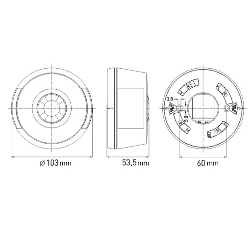 • wyposażony w trzy detektory PIR, które umożliwiają detekcję ruchu z obszaru pod czujnikiem oraz po dwóch bocznych jego stronach
