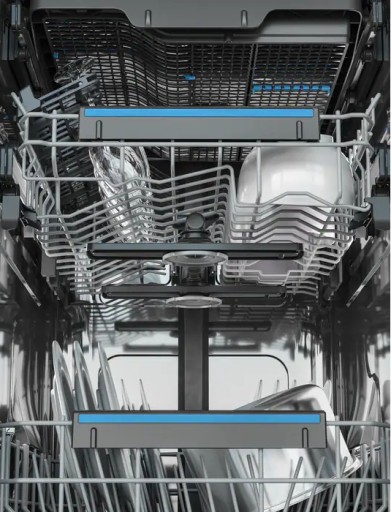 Dwa rotacyjne ramiona spryskujące sprawiają, że wszystkie naczynia są idelnie czyste, ponieważ woda jest równomiernie rozprowadzana po całym urządzeniu.
