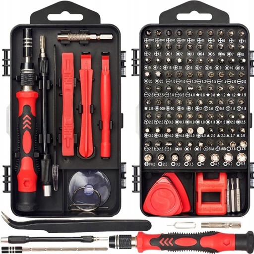 Dopasowany zestaw precyzyjnych narzędzi - 115 elementów dopasowanych do Twoich potrzeb , 98 wkrętaków dla rożnego zastosowania oraz wiele innych przyborów do profesjonalnych napraw. Wkrętaki zapakowane w poręczne etui organizer dla łatwego przechowywania i przetransportowania. Wymienne bity o różnych rozmiarach i kształtach, które można zamontować na uniwersalnym uchwycie, pozwolą zaoszczędzić miejsce zarówno w warsztacie, jak i w Twojej skrzynce narzędziowej. Narzędzia wykonane z trwałej stali chromowo-wanadowej są odporne na korozję.