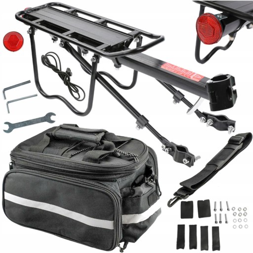 BAGAŻNIK ROWEROWY ALUMINIOWY UNIWERSALNY MOCNY + Torba Sakwy ZESTAW