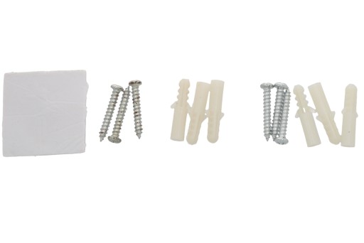 - Zestaw do montażu: śrubki z kołkami, taśma dwustronna