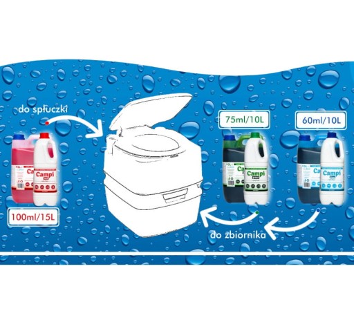 Campi Red to preparat do stosowania w zbiornikach z czystą wodą do spłukiwania w przenośnych toaletach, przyczepach kempingowych, kamperach i jachtach. Nadaje przyjemny zapach.